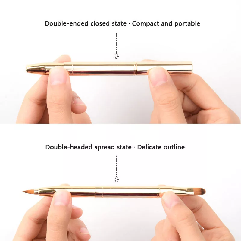 Tento štetec na make-up na pery má dvojitý dizajn s mäkkými syntetickými štetinami. Má presnú špičku na zvýraznenie línií pier a plochý štetec na vyplnenie farby, s elegantnou kovovou rukoväťou pre ľahké uchopenie a použitie na cestách.